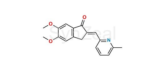 Donepezil Impurity 22 is chemically (E)-5,6-dimethoxy-2-((6-methylpyridin-2-yl)methylene)-2,3-dihydro-1H-inden-1-one. Donepezil Impurity 22 is supplied with detailed characterization data compliant with regulatory guideline. Donepezil Impurity 22 can be used for the analytical method development, method validation (AMV), Quality Controlled (QC) application for Abbreviated New Drug Application (ANDA) or during commercial production of Donepezil.