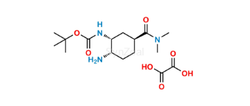 Edoxaban Impurity 25(1R,2S,4R) Oxalate is chemically Tert-butyl ((1S,2R,5R)-2-amino-5-(dimethylcarbamoyl)cyclohexyl)carbamate oxalate. Edoxaban Impurity 25(1R,2S,4R) Oxalate is supplied with detailed characterization data compliant with regulatory guideline. Edoxaban Impurity 25(1R,2S,4R) Oxalate can be used for the analytical method development, method validation (AMV), Quality Controlled (QC) application for Abbreviated New Drug Application (ANDA) or during commercial production of Edoxaban.