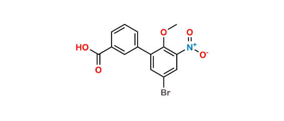 Eltrombopag Nitro Impurity is chemically 5'-Bromo-2'-methoxy-3'-nitro-[1,1'-biphenyl]-3-carboxylic acid. Eltrombopag Nitro Impurity is supplied with detailed characterization data compliant with regulatory guideline. Eltrombopag Nitro Impurity can be used for the analytical method development, method validation (AMV), Quality Controlled (QC) application for Abbreviated New Drug Application (ANDA) or during commercial production of Eltrombopag.