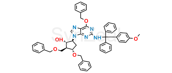 Entecavir Impurity 8 is chemically (1S,2S,3S,5S)-3-(Benzyloxy)-5-(6-(benzyloxy)-2-(((4-methoxyphenyl)diphenylmethyl)amino)-9H-purin-9-yl)-2-((benzyloxy)methyl)cyclopentan-1-ol. Entecavir Impurity 8 is supplied with detailed characterization data compliant with regulatory guideline. Entecavir Impurity 8 can be used for the analytical method development, method validation (AMV), Quality Controlled (QC) application for Abbreviated New Drug Application (ANDA) or during commercial production of Entecavir.