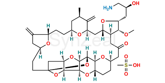 化学名称: 11,15:18,21:24,28-Triepoxy-7,9-ethano-12,15-methano-9H,15H-furo[3,2-i]furo[2',3':5,6]pyrano[4,3-b][1,4]dioxacyclopentacosin-5(4H)-one, 2-[(2S)-3-amino-2-hydroxypropyl]hexacosahydro-3-methoxy-26-methyl-20,27-bis(methylene)-, (2R,3R,3aS,7R,8aS,9S,10aR,11S,12R,13aR,13bS,15S,18S,21S,24S,26R,28R,29aS)-, methanesulfonate (1:1)