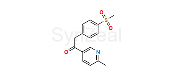 Etoricoxib Impurity D is chemically 1-(6-Methylpyridin-3-yl)-2-(4-(methylsulfonyl)phenyl)ethan-1-one. It is also known as Etoricoxib Ketosulfone. Etoricoxib Impurity D is supplied with detailed characterization data compliant with regulatory guideline. Etoricoxib Impurity D can be used for the analytical method development, method validation (AMV), Quality Controlled (QC) application for Abbreviated New Drug Application (ANDA) or during commercial production of Etoricoxib.