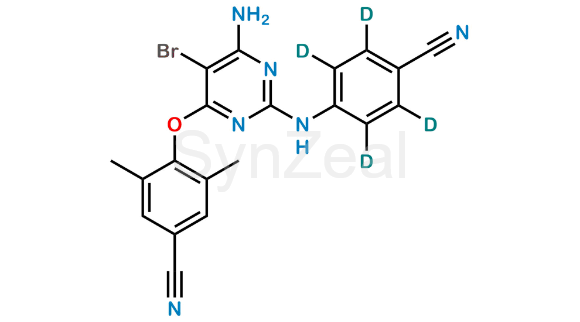 Etravirine D4 is chemically 4-((4-Amino-5-bromo-6-(4-cyano-2,6-dimethylphenoxy)pyrimidin-2-yl)amino)benzonitrile-2,3,5,6-d4. Etravirine D4 is supplied with detailed characterization data compliant with regulatory guideline. Etravirine D4 can be used for the analytical method development, method validation (AMV), Quality Controlled (QC) application for Abbreviated New Drug Application (ANDA) or during commercial production of Etravirine.