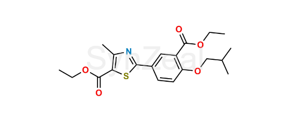 Febuxostat DEE Impurity is chemically Ethyl 2-(3-(ethoxycarbonyl)-4-isobutoxyphenyl)-4-methylthiazole-5-carboxylate. Febuxostat DEE Impurity is supplied with detailed characterization data compliant with regulatory guideline. Febuxostat DEE Impurity can be used for the analytical method development, method validation (AMV), Quality Controlled (QC) application for Abbreviated New Drug Application (ANDA) or during commercial production of Febuxostat.