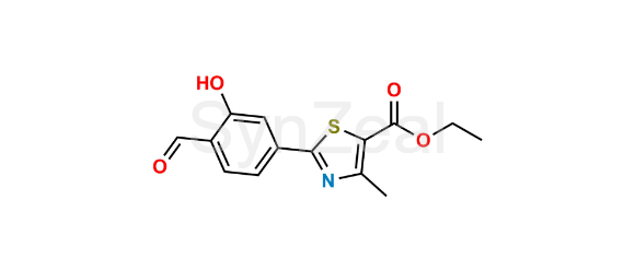 Febuxostat Impurity 36 is chemically Ethyl 2-(4-formyl-3-hydroxyphenyl)-4-methylthiazole-5-carboxylate. Febuxostat Impurity 36 is supplied with detailed characterization data compliant with regulatory guideline. Febuxostat Impurity 36 can be used for the analytical method development, method validation (AMV), Quality Controlled (QC) application for Abbreviated New Drug Application (ANDA) or during commercial production of Febuxostat.