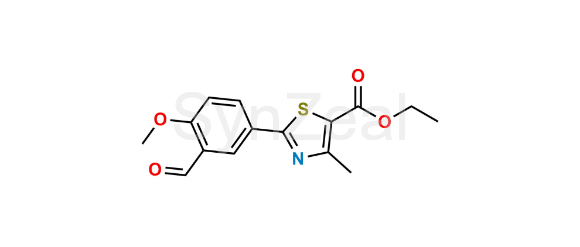Febuxostat Impurity 39 is chemically Ethyl 2-(3-formyl-4-methoxyphenyl)-4-methylthiazole-5-carboxylate. Febuxostat Impurity 39 is supplied with detailed characterization data compliant with regulatory guideline. Febuxostat Impurity 39 can be used for the analytical method development, method validation (AMV), Quality Controlled (QC) application for Abbreviated New Drug Application (ANDA) or during commercial production of Febuxostat.