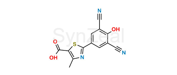 Febuxostat Impurity 47 is chemically 2-(3,5-Dicyano-4-hydroxyphenyl)-4-methylthiazole-5-carboxylic acid. Febuxostat Impurity 47 is supplied with detailed characterization data compliant with regulatory guideline. Febuxostat Impurity 47 can be used for the analytical method development, method validation (AMV), Quality Controlled (QC) application for Abbreviated New Drug Application (ANDA) or during commercial production of Febuxostat.