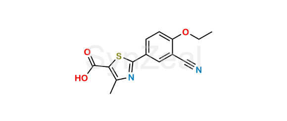 Febuxostat Impurity 55 is chemically 2-(3-Cyano-4-ethoxyphenyl)-4-methylthiazole-5-carboxylic acid. Febuxostat Impurity 55 is supplied with detailed characterization data compliant with regulatory guideline. Febuxostat Impurity 55 can be used for the analytical method development, method validation (AMV), Quality Controlled (QC) application for Abbreviated New Drug Application (ANDA) or during commercial production of Febuxostat.
