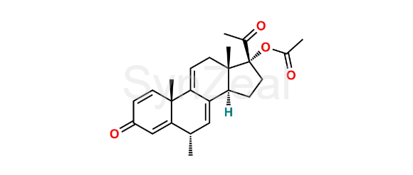 Fluormetholone Acetate, 7, 9(11) diene analog is chemically (6S,10S,13S,14S,17R)-17-acetyl-6,10,13-trimethyl-3-oxo-6,10,12,13,14,15,16,17-octahydro-3H-cyclopenta[a]phenanthren-17-yl acetate. Fluormetholone Acetate, 7, 9(11) diene analog is supplied with detailed characterization data compliant with regulatory guideline. Fluormetholone Acetate, 7, 9(11) diene analog can be used for the analytical method development, method validation (AMV), Quality Controlled (QC) application for Abbreviated New Drug Application (ANDA) or during commercial production of Fluorometholone.