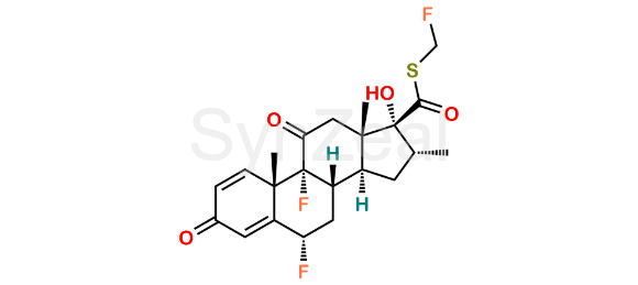 Fluticasone 11-Keto Impurity is chemically S-(fluoromethyl) (6S,8S,9R,10S,13S,14S,16R,17R)-6,9-difluoro-17-hydroxy-10,13,16-trimethyl-3,11-dioxo-6,7,8,9,10,11,12,13,14,15,16,17-dodecahydro-3H-cyclopenta[a]phenanthrene-17-carbothioate. Fluticasone 11-Keto Impurity is supplied with detailed characterization data compliant with regulatory guideline. Fluticasone 11-Keto Impurity can be used for the analytical method development, method validation (AMV), Quality Controlled (QC) application for Abbreviated New Drug Application (ANDA) or during commercial production of Fluticasone.