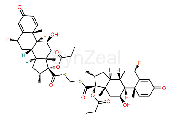 化学名称: (6S,6'S,8S,8'S,9R,9'R,10S,10'S,11S,11'S,13S,13'S,14S,14'S,16R,16'R,17R,17'R)-((methylenebis(sulfanediyl))bis(carbonyl))bis(6,9-difluoro-11-hydroxy-10,13,16-trimethyl-3-oxo-6,7,8,9,10,11,12,13,14,15,16,17-dodecahydro-3H-cyclopenta[a]phenanthrene-17,17-diyl) dipropionate ; Androsta-1,4-diene-17-carbothioic acid, 6,9-difluoro-11-hydroxy-16-methyl-3-oxo-17-(1-oxopropoxy)-, S,S'-methylene ester, (6α,11β,16α,17α)-(6'α,11'β,16'α,17'α)- (9CI)