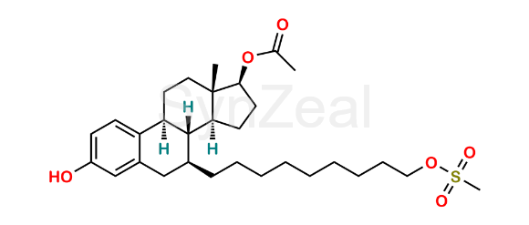 Fulvestrant Impurity 2 is chemically (7S,8R,9S,13S,14S,17S)-3-Hydroxy-13-methyl-7-(9-((methylsulfonyl)oxy)nonyl)-7,8,9,11,12,13,14,15,16,17-decahydro-6H-cyclopenta[a]phenanthren-17-yl acetate. Fulvestrant Impurity 2 is supplied with detailed characterization data compliant with regulatory guideline. Fulvestrant Impurity 2 can be used for the analytical method development, method validation (AMV), Quality Controlled (QC) application for Abbreviated New Drug Application (ANDA) or during commercial production of Fulvestrant.
