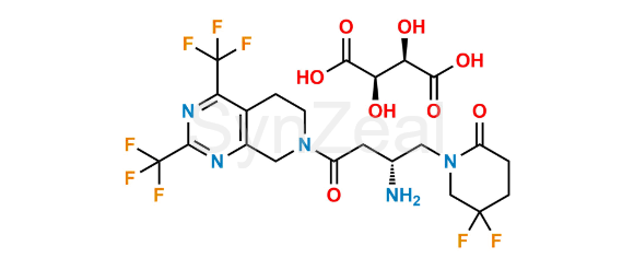 Gemigliptin Tartrate Enantiomer is chemically (R)-1-(2-Amino-4-(2,4-bis(trifluoromethyl)-5,8-dihydropyrido[3,4-d]pyrimidin-7(6H)-yl)-4-oxobutyl)-5,5-difluoropiperidin-2-one (2R,3R)-2,3-dihydroxysuccinate. Gemigliptin Tartrate Enantiomer is supplied with detailed characterization data compliant with regulatory guideline. Gemigliptin Tartrate Enantiomer can be used for the analytical method development, method validation (AMV), Quality Controlled (QC) application for Abbreviated New Drug Application (ANDA) or during commercial production of Gemigliptin.