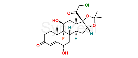 Halcinonide Impurity 6 is chemically (2S,6aS,6bR,7S,8aS,8bS,11aR,12aS,12bS)-8b-(2-Chloroacetyl)-6b-fluoro-2,7-dihydroxy-6a,8a,10,10-tetramethyl-1,2,5,6,6a,6b,7,8,8a,8b,11a,12,12a,12b-tetradecahydro-4H-naphtho[2',1':4,5]indeno[1,2-d][1,3]dioxol-4-one. Halcinonide Impurity 6 is supplied with detailed characterization data compliant with regulatory guideline. Halcinonide Impurity 6 can be used for the analytical method development, method validation (AMV), Quality Controlled (QC) application for Abbreviated New Drug Application (ANDA) or during commercial production of Halcinonide.