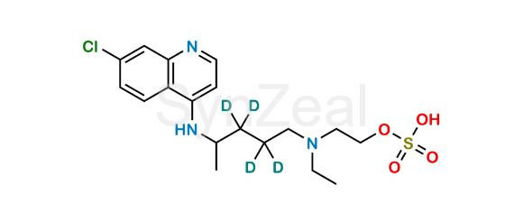 Hydroxychloroquine-d4 O-Sulfate is chemically 2-((4-((7-Chloroquinolin-4-yl)amino)pentyl-2,2,3,3-d4)(ethyl)amino)ethyl hydrogen sulfate. Hydroxychloroquine-d4 O-Sulfate is supplied with detailed characterization data compliant with regulatory guideline. Hydroxychloroquine-d4 O-Sulfate can be used for the analytical method development, method validation (AMV), Quality Controlled (QC) application for Abbreviated New Drug Application (ANDA) or during commercial production of Hydroxychloroquine.
