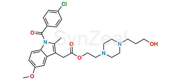 Indomethacin Impurity 2 is chemically 2-(4-(3-Hydroxypropyl)piperazin-1-yl)ethyl 2-(1-(4-chlorobenzoyl)-5-methoxy-2-methyl-1H-indol-3-yl)acetate. Indomethacin Impurity 2 is supplied with detailed characterization data compliant with regulatory guideline. Indomethacin Impurity 2 can be used for the analytical method development, method validation (AMV), Quality Controlled (QC) application for Abbreviated New Drug Application (ANDA) or during commercial production of Indomethacin.