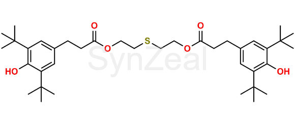 Irganox 1035 is chemically Thiobis(ethane-2,1-diyl) bis(3-(3,5-di-tert-butyl-4-hydroxyphenyl)propanoate). Irganox 1035 is supplied with detailed characterization data compliant with regulatory guideline. Irganox 1035 can be used for the analytical method development, method validation (AMV), Quality Controlled (QC) application for Abbreviated New Drug Application (ANDA) or during commercial production of Irganox.