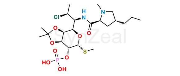 Isopropylidene Clindamycin Phosphate is chemically (3aS,4R,6R,7R,7aS)-4-((1S,2S)-2-Chloro-1-((2S,4R)-1-methyl-4-propylpyrrolidine-2-carboxamido)propyl)-2,2-dimethyl-6-(methylthio)tetrahydro-4H-[1,3]dioxolo[4,5-c]pyran-7-yl dihydrogen phosphate. Isopropylidene Clindamycin Phosphate is supplied with detailed characterization data compliant with regulatory guideline. Isopropylidene Clindamycin Phosphate can be used for the analytical method development, method validation (AMV), Quality Controlled (QC) application for Abbreviated New Drug Application (ANDA) or during commercial production of Clindamycin.