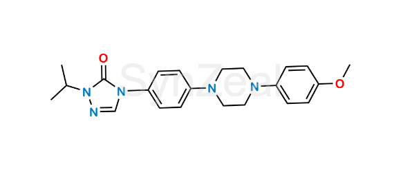 Itraconazole Methoxy Isopropyltriazolone Impurity is chemically 2-Isopropyl-4-(4-(4-(4-methoxyphenyl)piperazin-1-yl)phenyl)-2,4-dihydro-3H-1,2,4-triazol-3-one. Itraconazole Methoxy Isopropyltriazolone Impurity is supplied with detailed characterization data compliant with regulatory guideline. Itraconazole Methoxy Isopropyltriazolone Impurity can be used for the analytical method development, method validation (AMV), Quality Controlled (QC) application for Abbreviated New Drug Application (ANDA) or during commercial production of Itraconazole .