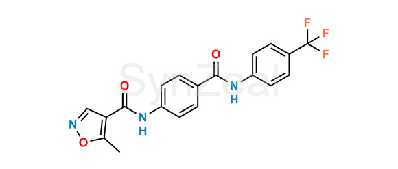 Leflunomide Impurity 3 is chemically 5-Methyl-N-(4-((4-(trifluoromethyl)phenyl)carbamoyl)phenyl)isoxazole-4-carboxamide. Leflunomide Impurity 3 is supplied with detailed characterization data compliant with regulatory guideline. Leflunomide Impurity 3 can be used for the analytical method development, method validation (AMV), Quality Controlled (QC) application for Abbreviated New Drug Application (ANDA) or during commercial production of Leflunomide.
