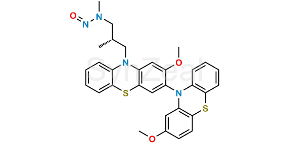 Levomepromazine Nitroso Impurity 3 is chemically (S)-N-(3-(2,2'-Dimethoxy-10H-[3,10'-biphenothiazin]-10-yl)-2-methylpropyl)-N-methylnitrous amide. Levomepromazine Nitroso Impurity 3 is supplied with detailed characterization data compliant with regulatory guideline. Levomepromazine Nitroso Impurity 3 can be used for the analytical method development, method validation (AMV), Quality Controlled (QC) application for Abbreviated New Drug Application (ANDA) or during commercial production of Levomepromazine .