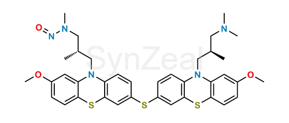 Levomepromazine Nitroso Impurity 4 is chemically N-((S)-3-(7-((10-((R)-3-(Dimethylamino)-2-methylpropyl)-8-methoxy-10H-phenothiazin-3-yl)thio)-2-methoxy-10H-phenothiazin-10-yl)-2-methylpropyl)-N-methylnitrous amide. Levomepromazine Nitroso Impurity 4 is supplied with detailed characterization data compliant with regulatory guideline. Levomepromazine Nitroso Impurity 4 can be used for the analytical method development, method validation (AMV), Quality Controlled (QC) application for Abbreviated New Drug Application (ANDA) or during commercial production of Levomepromazine .