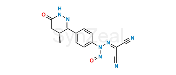 Levosimendan Nitroso Impurity is chemically (R)-N'-(dicyanomethylene)-N-(4-(4-methyl-6-oxo-1,4,5,6-tetrahydropyridazin-3-yl)phenyl)nitrous hydrazide. Levosimendan Nitroso Impurity is supplied with detailed characterization data compliant with regulatory guideline. Levosimendan Nitroso Impurity can be used for the analytical method development, method validation (AMV), Quality Controlled (QC) application for Abbreviated New Drug Application (ANDA) or during commercial production of Levosimendan.