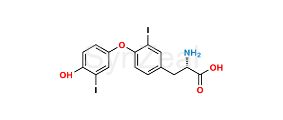 Levothyroxine EP Impurity J is chemically (2S)-2-Amino-3-[4-(4-hydroxy-3-iodophenoxy)-3-iodophenyl]propanoic acid (as per EP). Levothyroxine EP Impurity J is supplied with detailed characterization data compliant with regulatory guideline. Levothyroxine EP Impurity J can be used for the analytical method development, method validation (AMV), Quality Controlled (QC) application for Abbreviated New Drug Application (ANDA) or during commercial production of Levothyroxine.