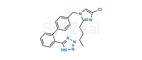 Losartan Impurity 29 is chemically 5-(4'-((2-Butyl-4-chloro-1H-imidazol-1-yl)methyl)-[1,1'-biphenyl]-2-yl)-1H-tetrazole. Losartan Impurity 29 is supplied with detailed characterization data compliant with regulatory guideline. Losartan Impurity 29 can be used for the analytical method development, method validation (AMV), Quality Controlled (QC) application for Abbreviated New Drug Application (ANDA) or during commercial production of Losartan.