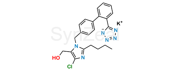 Losartan Potassium is chemically 2-Butyl-4-chloro-1-[[2'-(1H-tetrazol-5-yl)[1,1'-biphenyl]-4-yl]methyl]-1H-imidazole-5-methanol monopotassium salt ; . It is also known as Losartan MonoPotassium Salt. Losartan Potassium is supplied with detailed characterization data compliant with regulatory guideline. Losartan Potassium can be used for the analytical method development, method validation (AMV), Quality Controlled (QC) application for Abbreviated New Drug Application (ANDA) or during commercial production of Losartan.