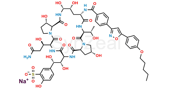 化学名称: Sodium 5-((1S,2S)-2-((2R,6S,9S,11R,12R,14aS,15S,20S,23S,25aS)-20-((R)-3-amino-1-hydroxy-3-oxopropyl)-2,11,12,15-tetrahydroxy-6-((S)-1-hydroxyethyl)-5,8,14,19,22,25-hexaoxo-9-(4-(5-(4-(pentyloxy)phenyl)isoxazol-3-yl)benzamido)tetracosahydro-1H-dipyrrolo[2,1-c:2',1'-l][1,4,7,10,13,16]hexaazacyclohenicosin-23-yl)-1,2-dihydroxyethyl)-2-hydroxybenzenesulfonate