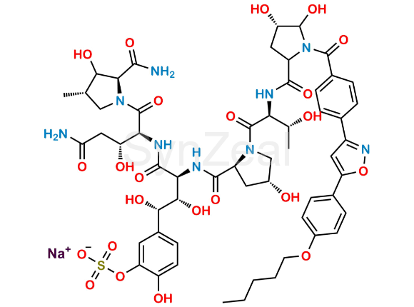 化学名称: Sodium 5-((1S,2S,3S)-4-(((2S,3R)-5-amino-1-((2S,4S)-2-carbamoyl-3-hydroxy-4-methylpyrrolidin-1-yl)-3-hydroxy-1,5-dioxopentan-2-yl)amino)-3-((2S,4R)-1-((2S,3R)-2-((4S)-4,5-dihydroxy-1-(4-(5-(4-(pentyloxy)phenyl)isoxazol-3-yl)benzoyl)pyrrolidine-2-carboxamido)-3-hydroxybutanoyl)-4-hydroxypyrrolidine-2-carboxamido)-1,2-dihydroxy-4-oxobutyl)-2-hydroxyphenyl sulfate