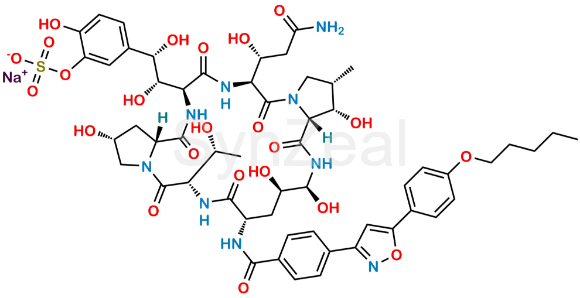 化学名称: Sodium 5-((1S,2S)-2-((2R,6S,9S,11R,12S,14aR,15S,16S,20S,23S,25aR)-20-((R)-3-amino-1-hydroxy-3-oxopropyl)-2,11,12,15-tetrahydroxy-6-((R)-1-hydroxyethyl)-16-methyl-5,8,14,19,22,25-hexaoxo-9-(4-(5-(4-(pentyloxy)phenyl)isoxazol-3-yl)benzamido)tetracosahydro-1H-dipyrrolo[2,1-c:2',1'-l][1,4,7,10,13,16]hexaazacyclohenicosin-23-yl)-1,2-dihydroxyethyl)-2-hydroxyphenyl sulfate