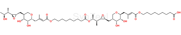 Mupirocin Impurity 3 is chemically 9-(((E)-4-((2S,3R,4R,5R)-5-(((2S,3S)-3-((2S,3S)-3-((9-(((E)-4-((2R,3R,4R,5S)-3,4-dihydroxy-5-(((2S,3S)-3-((2S,3S)-3-hydroxybutan-2-yl)oxiran-2-yl)methyl)tetrahydro-2H-pyran-2-yl)-3-methylbut-2-enoyl)oxy)nonanoyl)oxy)butan-2-yl)oxiran-2-yl)methyl)-3,4-dihydroxytetrahydro-2H-pyran-2-yl)-3-methylbut-2-enoyl)oxy)nonanoic acid. Mupirocin Impurity 3 is supplied with detailed characterization data compliant with regulatory guideline. Mupirocin Impurity 3 can be used for the analytical method development, method validation (AMV), Quality Controlled (QC) application for Abbreviated New Drug Application (ANDA) or during commercial production of Mupirocin.