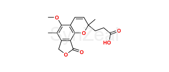Mycochromenic Acid is chemically 3-(5-Methoxy-2,6-dimethyl-9-oxo-7,9-dihydro-2H-furo[3,4-h]chromen-2-yl)propanoic acid. Mycochromenic Acid is supplied with detailed characterization data compliant with regulatory guideline. Mycochromenic Acid can be used for the analytical method development, method validation (AMV), Quality Controlled (QC) application for Abbreviated New Drug Application (ANDA) or during commercial production of Mycophenolate Mofetil.