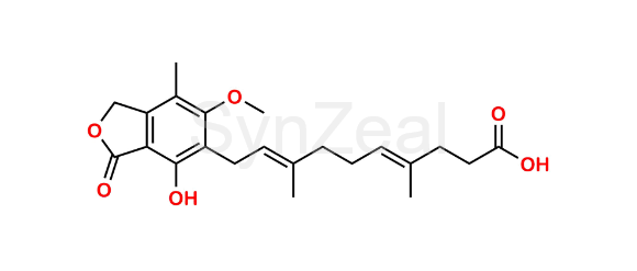 Mycophenolate Mofetil Impurity 10 is chemically (4E,8E)-10-(4-hydroxy-6-methoxy-7-methyl-3-oxo-1,3-dihydroisobenzofuran-5-yl)-4,8-dimethyldeca-4,8-dienoic acid. Mycophenolate Mofetil Impurity 10 is supplied with detailed characterization data compliant with regulatory guideline. Mycophenolate Mofetil Impurity 10 can be used for the analytical method development, method validation (AMV), Quality Controlled (QC) application for Abbreviated New Drug Application (ANDA) or during commercial production of Mycophenolate Mofetil.