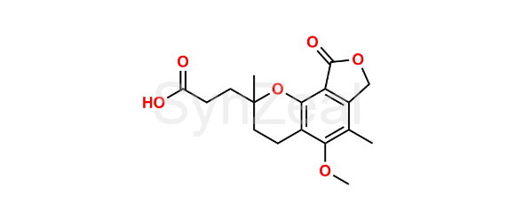 Mycophenolate Mofetil Impurity 6 is chemically 3-(5-methoxy-2,6-dimethyl-9-oxo-3,4,7,9-tetrahydro-2H-furo[3,4-h]chromen-2-yl)propanoic acid. Mycophenolate Mofetil Impurity 6 is supplied with detailed characterization data compliant with regulatory guideline. Mycophenolate Mofetil Impurity 6 can be used for the analytical method development, method validation (AMV), Quality Controlled (QC) application for Abbreviated New Drug Application (ANDA) or during commercial production of Mycophenolate Mofetil.