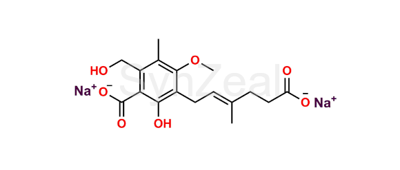 Mycophenolate Mofetil Impurity 7 is chemically Sodium (E)-3-(5-carboxylato-3-methylpent-2-en-1-yl)-2-hydroxy-6-(hydroxymethyl)-4-methoxy-5-methylbenzoate. Mycophenolate Mofetil Impurity 7 is supplied with detailed characterization data compliant with regulatory guideline. Mycophenolate Mofetil Impurity 7 can be used for the analytical method development, method validation (AMV), Quality Controlled (QC) application for Abbreviated New Drug Application (ANDA) or during commercial production of Mycophenolate Mofetil.