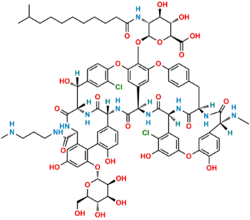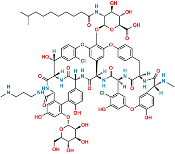 微笑: O=C1[C@](NC([C@](C2=CC(C3=C(O[C@H]4O[C@H](CO)[C@@H](O)[C@H](O)[C@@H]4O)C=C(O)C=C3[C@@H](C(NCCCN(N=O)C)=O)N1)=C(O)C=C2)([H])NC([C@]5([H])NC([C@@](C6=C(Cl)C(O)=CC(OC7=C(O)C=CC([C@](NC)([H])C8=O)=C7)=C6)([H])N9)=O)=O)=O)([H])[C@](C%10=CC(Cl)=C(OC%11=CC5=CC(OC%12=CC=C(C[C@](N8)([H])C9=O)C=C%12)=C%11O[C@@H]%13O[C@H](C(O)=O)[C@@H](O)[C@H](O)[C@H]%13NC(CCCCCCCCC(C)C)=O)C=C%10)([H])O