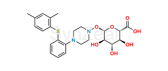 N-Hydroxylated Vortioxetine Glucuronide is chemically (2S,3S,4S,5R,6S)-6-((4-(2-((2,4-Dimethylphenyl)thio)phenyl)piperazin-1-yl)oxy)-3,4,5-trihydroxytetrahydro-2H-pyran-2-carboxylic acid. N-Hydroxylated Vortioxetine Glucuronide is supplied with detailed characterization data compliant with regulatory guideline. N-Hydroxylated Vortioxetine Glucuronide can be used for the analytical method development, method validation (AMV), Quality Controlled (QC) application for Abbreviated New Drug Application (ANDA) or during commercial production of Vortioxetine.