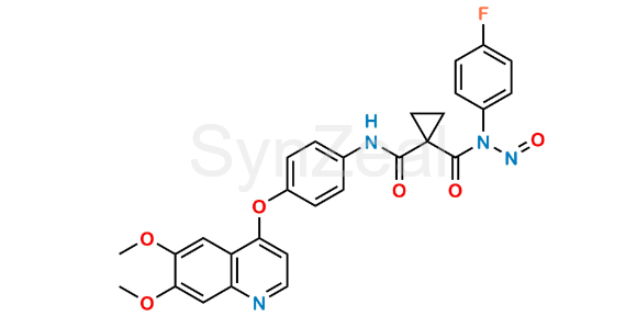 N-Nitroso Cabozantinib is chemically N-(4-((6,7-Dimethoxyquinolin-4-yl)oxy)phenyl)-N-(4-fluorophenyl)-N-nitrosocyclopropane-1,1-dicarboxamide. N-Nitroso Cabozantinib is supplied with detailed characterization data compliant with regulatory guideline. N-Nitroso Cabozantinib can be used for the analytical method development, method validation (AMV), Quality Controlled (QC) application for Abbreviated New Drug Application (ANDA) or during commercial production of Cabozantinib.