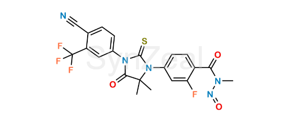 N-Nitroso Enzalutamide is chemically 4-(3-(4-Cyano-3-(trifluoromethyl)phenyl)-5,5-dimethyl-4-oxo-2-thioxoimidazolidin-1-yl)-2-fluoro-N-methyl-N-nitrosobenzamide. N-Nitroso Enzalutamide is supplied with detailed characterization data compliant with regulatory guideline. N-Nitroso Enzalutamide can be used for the analytical method development, method validation (AMV), Quality Controlled (QC) application for Abbreviated New Drug Application (ANDA) or during commercial production of Enzalutamide.