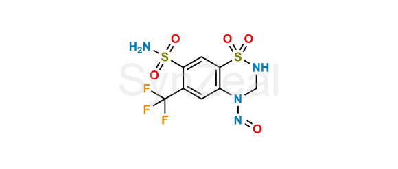 N-Nitroso-Hydroflumethiazide is chemically 4-Nitroso-6-(trifluoromethyl)-3,4-dihydro-2H-benzo[e][1,2,4]thiadiazine-7-sulfonamide 1,1-dioxide. N-Nitroso-Hydroflumethiazide is supplied with detailed characterization data compliant with regulatory guideline. N-Nitroso-Hydroflumethiazide can be used for the analytical method development, method validation (AMV), Quality Controlled (QC) application for Abbreviated New Drug Application (ANDA) or during commercial production of Hydroflumethiazide.