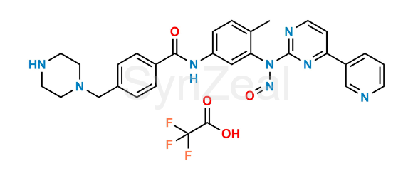 N-Nitroso Imatinib EP Impurity C (Possibility 1) is chemically N-(4-methyl-3-(nitroso(4-(pyridin-3-yl)pyrimidin-2-yl)amino)phenyl)-4-(piperazin-1-ylmethyl)benzamide 2,2,2-trifluoroacetate. N-Nitroso Imatinib EP Impurity C (Possibility 1) is supplied with detailed characterization data compliant with regulatory guideline. N-Nitroso Imatinib EP Impurity C (Possibility 1) can be used for the analytical method development, method validation (AMV), Quality Controlled (QC) application for Abbreviated New Drug Application (ANDA) or during commercial production of Imatinib.