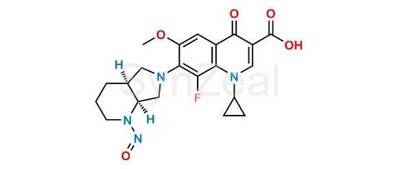 N-Nitroso Moxifloxacin EP Impurity D is chemically 1-Cyclopropyl-8-fluoro-6-methoxy-7-((4aS,7aS)-1-nitrosooctahydro-6H-pyrrolo[3,4-b]pyridin-6-yl)-4-oxo-1,4-dihydroquinoline-3-carboxylic acid. N-Nitroso Moxifloxacin EP Impurity D is supplied with detailed characterization data compliant with regulatory guideline. N-Nitroso Moxifloxacin EP Impurity D can be used for the analytical method development, method validation (AMV), Quality Controlled (QC) application for Abbreviated New Drug Application (ANDA) or during commercial production of Moxifloxacin.