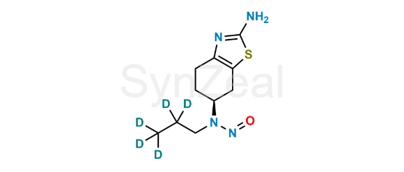 N-Nitroso Pramipexole-D5 is chemically (S)-N-(2-Amino-4,5,6,7-tetrahydrobenzo[d]thiazol-6-yl)-N-(propyl-2,2,3,3,3-d5)nitrous amide. N-Nitroso Pramipexole-D5 is supplied with detailed characterization data compliant with regulatory guideline. N-Nitroso Pramipexole-D5 can be used for the analytical method development, method validation (AMV), Quality Controlled (QC) application for Abbreviated New Drug Application (ANDA) or during commercial production of Pramipexole.