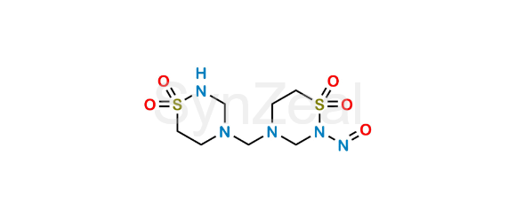 N-Nitroso Taurolidine is chemically 4-((1,1-Dioxido-1,2,4-thiadiazinan-4-yl)methyl)-2-nitroso-1,2,4-thiadiazinane 1,1-dioxide. N-Nitroso Taurolidine is supplied with detailed characterization data compliant with regulatory guideline. N-Nitroso Taurolidine can be used for the analytical method development, method validation (AMV), Quality Controlled (QC) application for Abbreviated New Drug Application (ANDA) or during commercial production of Taurolidine.