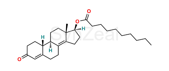 Nandrolone Decanoate EP Impurity G is chemically 3-Oxoestra-4,8(14)-dien-17β-yl decanoate (as per EP). Nandrolone Decanoate EP Impurity G is supplied with detailed characterization data compliant with regulatory guideline. Nandrolone Decanoate EP Impurity G can be used for the analytical method development, method validation (AMV), Quality Controlled (QC) application for Abbreviated New Drug Application (ANDA) or during commercial production of Nandrolone Decanoate.