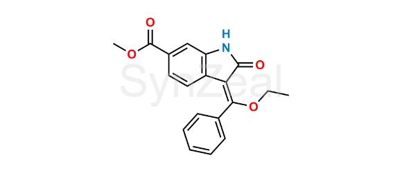 Nintedanib Ethoxy Enolindole is chemically Methyl (Z)-3-(ethoxy(phenyl)methylene)-2-oxoindoline-6-carboxylate. Nintedanib Ethoxy Enolindole is supplied with detailed characterization data compliant with regulatory guideline. Nintedanib Ethoxy Enolindole can be used for the analytical method development, method validation (AMV), Quality Controlled (QC) application for Abbreviated New Drug Application (ANDA) or during commercial production of Nintedanib.