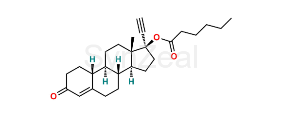 Norethisterone Hexenoate is chemically (8R,9S,10R,13S,14S,17R)-17-ethynyl-13-methyl-3-oxo-2,3,6,7,8,9,10,11,12,13,14,15,16,17-tetradecahydro-1H-cyclopenta[a]phenanthren-17-yl hexanoate. Norethisterone Hexenoate is supplied with detailed characterization data compliant with regulatory guideline. Norethisterone Hexenoate can be used for the analytical method development, method validation (AMV), Quality Controlled (QC) application for Abbreviated New Drug Application (ANDA) or during commercial production of Norethindrone.